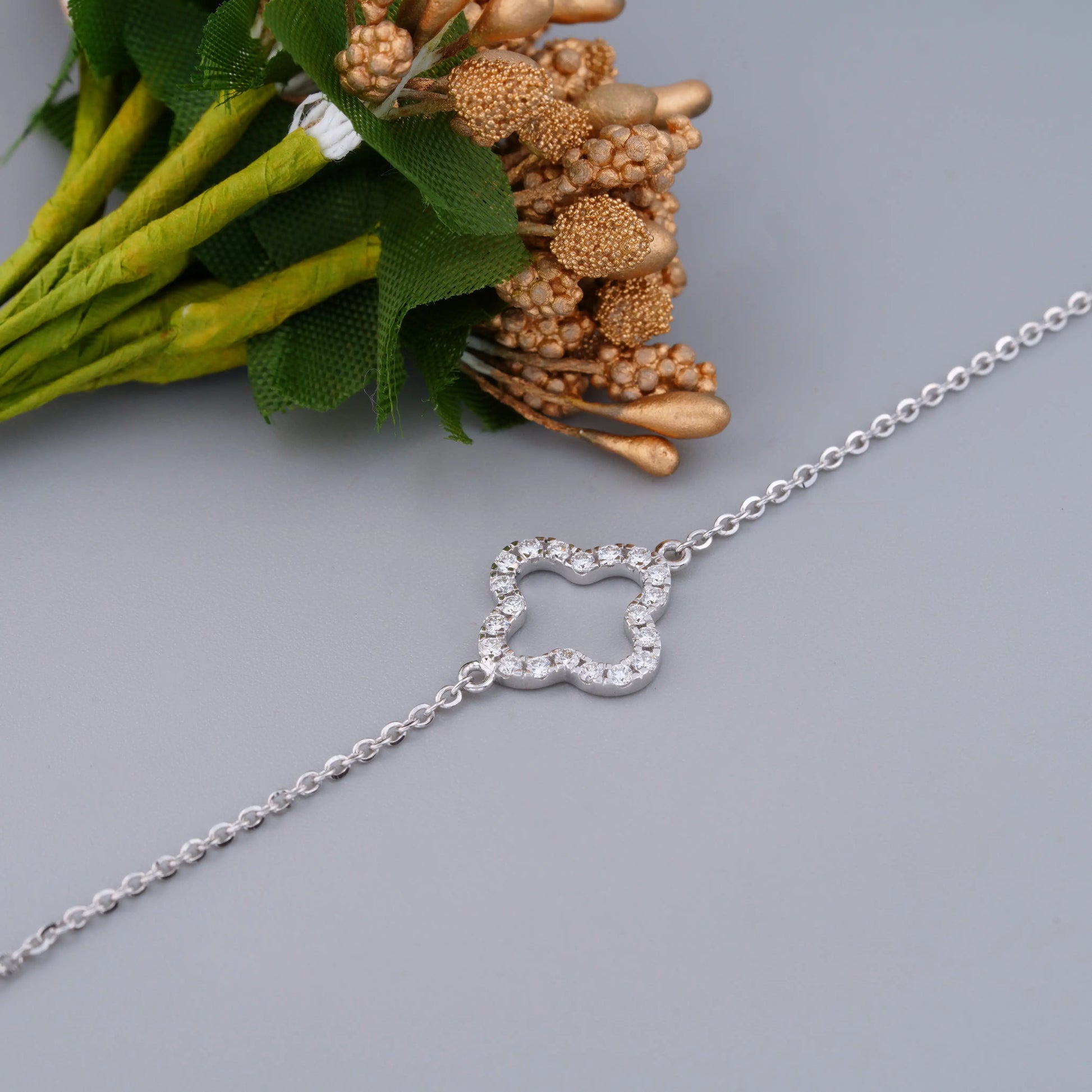 Each clover-shaped station sparkles with meticulously set lab grown round brilliant diamonds, forming a floral silhouette that adds charm and femininity to your wrist. The delicate prong setting allows each stone to shine from every angle, catching the light with every movement.