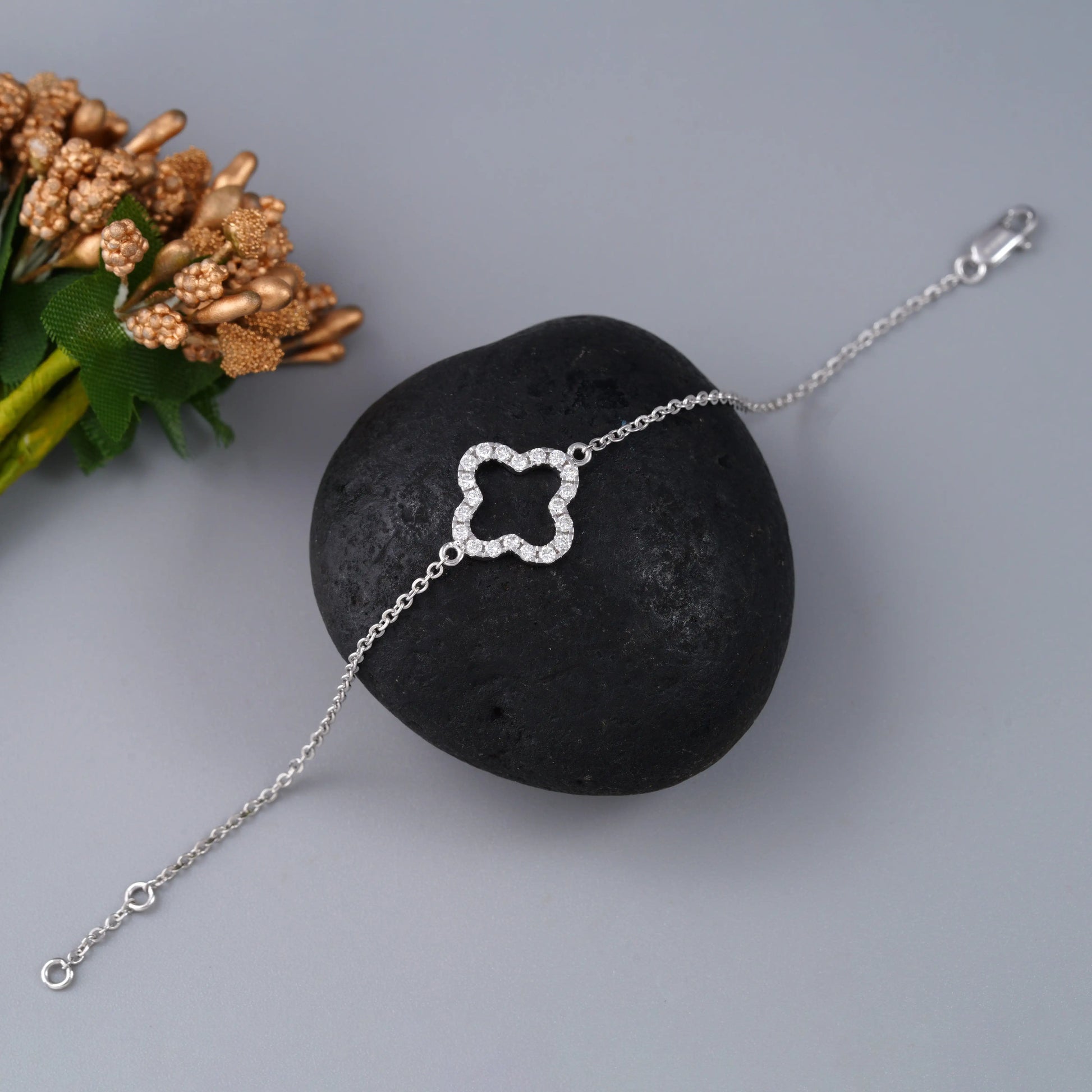 14K Gold Diamond Clover Bracelet with Lab Grown Round Brilliant Diamonds in Prong Setting